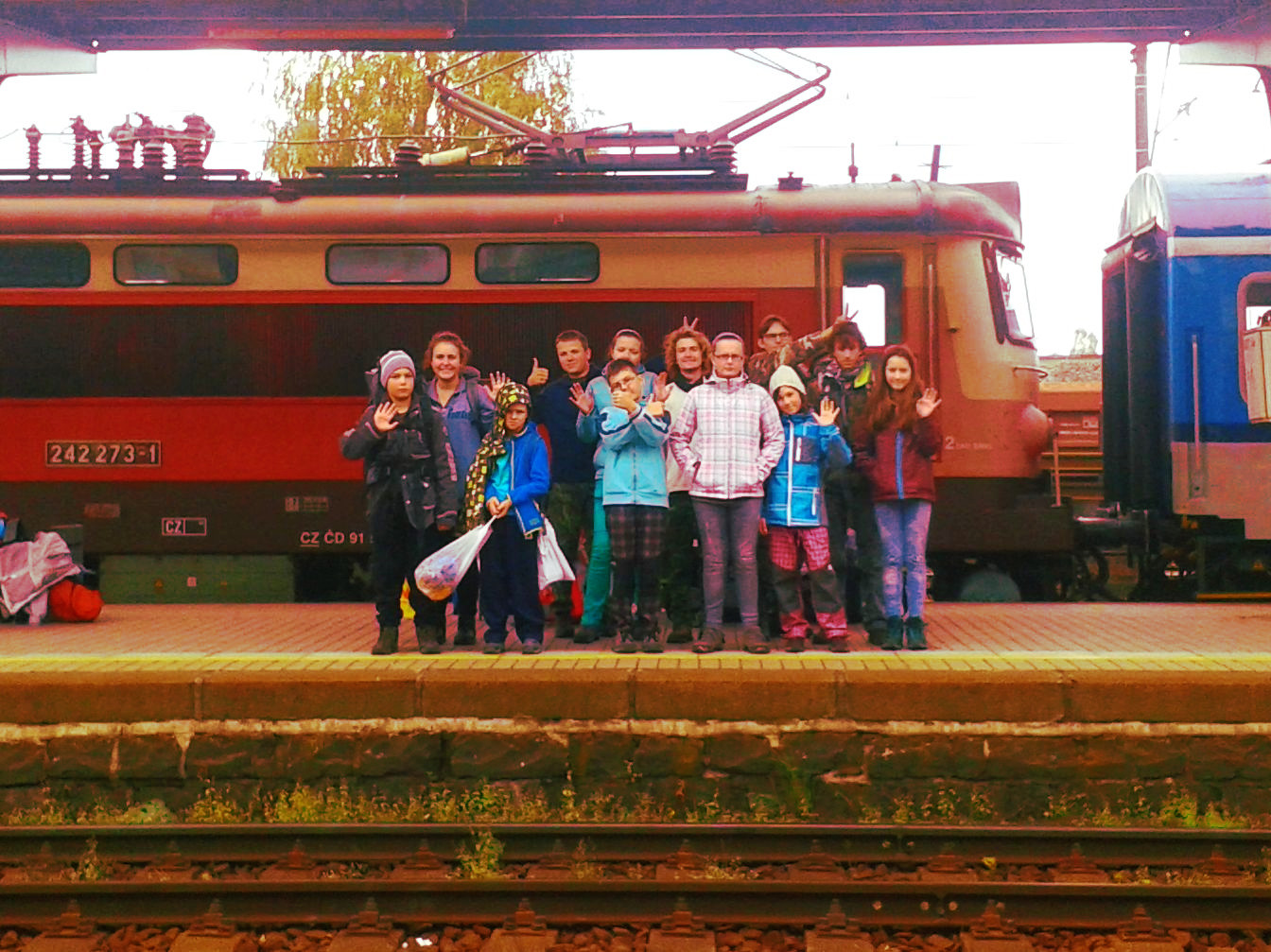 V pátek v 17:00 jsme se sešli na nádraží. Ve vlaku jsme dostali bombu a po cestě do Vítanova jsme řešili hádanky, abychom nevybuchli.