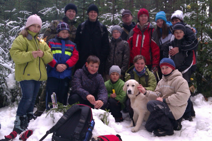 Od mamlase jsme se vidali do lesa kde jsme ozdobili stromeček a zapálili prskavky.