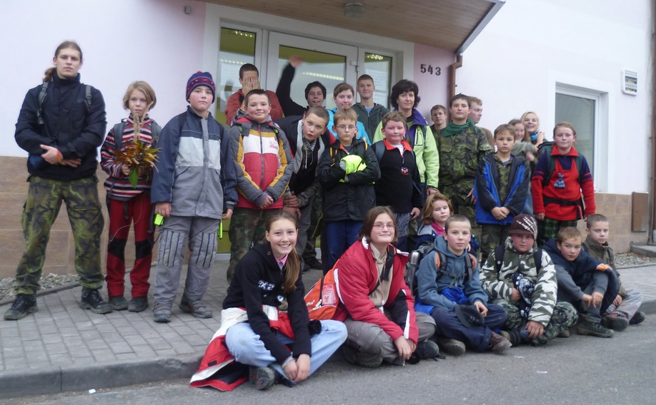 ….jsme měli k snídani Rybičkovou pomazánku, kterou nám udělaly Yetti s Lucish a mimochodem byla moc dobrá. Potom jsme si sbalili pár věcí a vyrazili do slavné cukrárny v Bojkovicích. Poprvé jsme se zastavili v nějakém městě, kde jsme hledali školu na Malé Straně. Měli jsme zjistit jakou barvu škola má a jak se jmenuje pan ředitel. Když jsme tyto informace dohledali, tak Big volal Pitrisovi ,že se ztratili a sedí někde v zámku. My je samozřejmě našli a vyrazili k nějakému kostelu. U kostela jsme hledali další indície, které Beky našla a které nám pomohli vše rozlousknout. Dále jsme se dostali do lesa, kde jsme zažili spousty zábavy a kde jsme si udělali oběd, čili chleba na ohni-topinky.