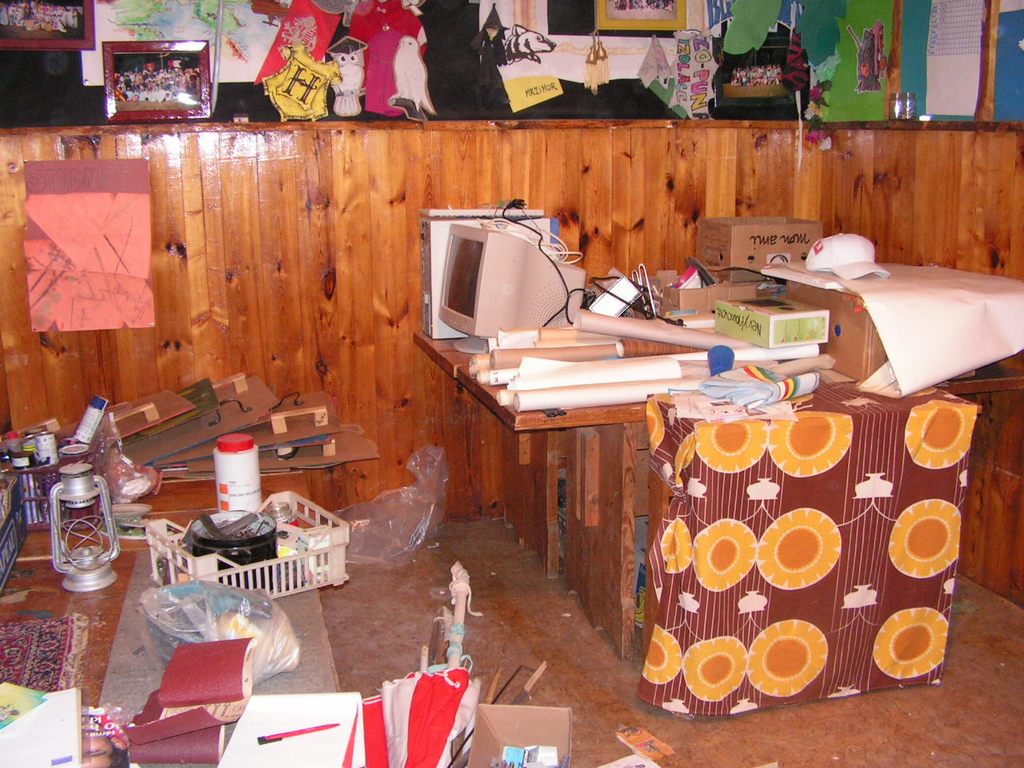 - nepořádek v klubovně -