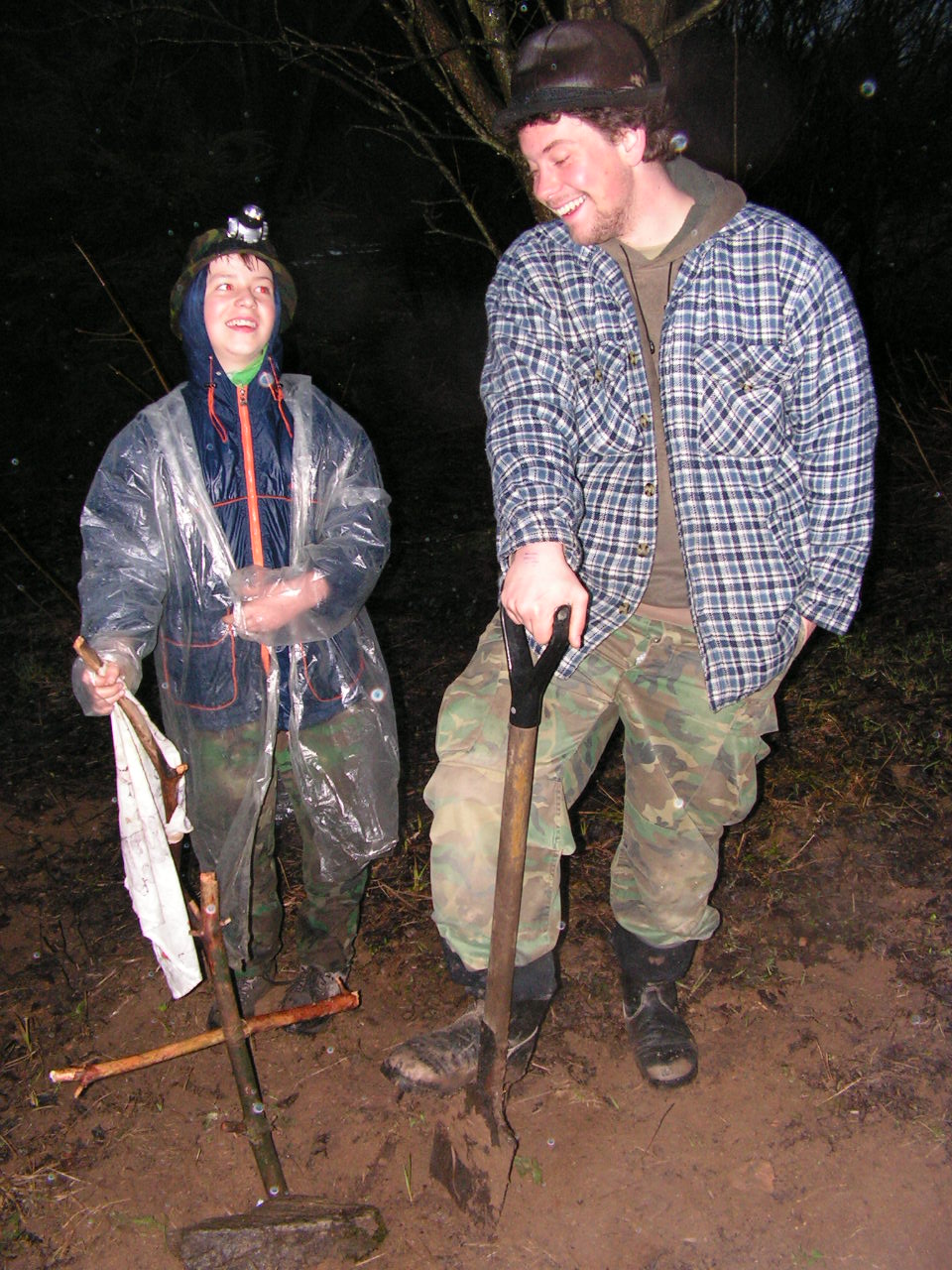 Po sobotním fyzicky i psychicky náročném dni se nám v neděli ráno zatraceně nechtělo vstávat! No, tak jsme nevstávali. Teda vstávali, ale až tak kolem půl deváté. První vyspalci se ujali mazání chlebů napodobeninou másla a marmošky, takže například Honzys si možná poprvé zamazal se svojí mamkou Yetti. Po snídani jsme se vrhli na luštění dalších indícií, protože už jsme jich pár měli a zatím jsme nevěděli, co dělat dál. Mozky a jiná nervová centra byly rozžhaveny doběla, z hlav se nám pochopitelně i kouřilo. Ale vymysleli jsme to! Bylo to fakt hustý. No schválně, co vám vyjde z tohodlenc: Ovwvm evmvx h xvhmvpvn nebo jpesevůzdelfenocn plomrtisskoptkovenůnčich mumácit, žtrupesluch?a dtoe už pá írrva a ještě nalétává tu náročně a vážně. Vážený ó váš šéf potáceje nese závaží. Náramně ó máš rád vypečené tu váhavě tam no a pak ještě jedna tabulková šifřička. Nutno podotknout, že i barvy mají své opodstatnění. Vyšlo nám, že máme jít k vodě a dělat lodě!!! No, tak jsme šli a dělali. Každá skupina vytvořila jednu lodičku z třísek zlomeného smrku. Následovala generálka na Sázavskou regatu, jelikož jsme ty lodičky pouštěli po říčce Svratce. Někomu nabraly ten správný proud, někomu zas ne a někomu se z lodičky vyklubala ponorka. A pak, že dřevo plave!!! Leda prd. Cestou po levém i pravém břehu jsme zdolávali různé močály, bažiny, mosty, ale hlavně jsme měli najít prsten. Ve všem tom naplaveným harampádí to vypadalo dost tragicky. Moc jsem tomu nevěřil, ale najednou koukám: zelený prkýnko, na něm velká červená beruška a ruka(vice) s něčím na jednom ze dvou prostředníčků, neboli na prsteníčku. Jo, byl to fakt prsten. A šipka vedle ukazovala dál po proudu. Naštěstí bleskově Misha našla další nádobku s indícií a prstem. Dřevěným. A teď to začalo být zajímavý. Měli jsme hledat lože Hr.Nčířovo, připravit věnec z česneku, dřevěný kříž, dubový kolík a připravit se na stětí hlavy a pohřbení těla i hlavy. Brr. Ježto byl ale čas polední, vydali jsme se raději poobědvati. Některé to však příliš netrápilo, pročež se raděi věnovali sněhověkoulové a šiškové bitvě přes říčku. Co nás však stihlo cestou?!. Hormlová si tak jde, jde, kouká jako obvykle do země, jako že by třeba něco našla a najednou div že nezařvala. Nebo asi možná spíš zařvala: zmije! Fakt! Typická klikatá čára na zádech a už si to plazí ke stromu. Chyťte Euru! Je na vodítku. Ne, už není! Honem! Uf. A v tom si to přihasí malej Smolda k davu, kterej je nápadně v kruhu kolem nečeho uprostřed. No a kam myslíte že si to namířil? No jistě, rovnou na panímámu klikatou. Stůj!!!! Jo, naštěstí ho Beruščiny bystré ruce zachytily včas. No, kdo by to byl řekl. Takhle na jaře a už druhá zmije… Než nám kuchtičky pod vedením zkušeného Goga (kterého pak stejně vyhnali…) připravily nedělní mňamku – kuřecí směs s ánklbensovým sósem, zeleninkou a rýží – hráli jsme Rosiho gymplácké hry. Nejzábavnější určitě bylo hledání tyčinky čokoládových kaštanů v jídelně. Všichni slídili jak zběsilí, lezli po stolech, horech i dolech a nic. S nimi slídil i Černítko, který se furt potutelně nasmíval, motal se kolem hledačů, až jim to muselo být nápadný. Některým. Měl ty kaštany totiž viditelně přivázaný u pasu a bavil se, jak to nikoho nemohlo napadnout. A ostatní, co už a to přišli, s ním. Po obídku jsme dali nedělní polední klídek, prošpikovaný další přemýšlecí soutěží. Tentokrát měly skupinky napsat co nejvíc notoricky známých trojic. Někoho to bavilo víc, někoho míň, ale výsledek byl velmi zajímavý. Ti, co byli ve dvojicích první, měli nejmíň a ti, co ve dvojicích selhali, se mohli strhat. Po poledním klídku rozdal Bass další úkoly. Za každý splněný úkol mohla dostat skupinka indícii vedoucí k místu nálezu odpočinku upíra Hr.Nčíře. Úkoly byly docela náročné a zákeřné: Hunters měli postavit ze sněhu věž vysokou 2,8 m (z přemrzlého ledového sněhu a v silném dešti…), Svratupíci měli uběhnout 50 koleček kolem hřiště (ještě že jim pomohly místní běhny a běžci…), Giboni měli postavit z papíru model školy v poměru 1:1000 (který jim vzápětí rozsedl Polís…), další měli složit podle předlohy třicet různých origami (někteří po třicátém kroku vztekle odmrštili svůj výtvor, ať už to byla lvice, chryzantéma nebo lenochod…) a Kacíři si smlsli na řešení sudoku (úkol pro gympláky jak vyšitý…). Po náročném plnění Bass rozdal papíry s indiciemi, ze kterých jsme nejprve nebyli moc moudří, ale nakonec jsme vydedukovali, že půjdeme na náměstíčko hledat něco s Žižkou, nějaké číslo 87, nějaký dům se zazděným oknem s typickou klenbou. Šlo to docela rychle: náměstíčko, dům 87, ulice Žižkova, zazděné okno a tady zpráva – jděte po stopách krve. To nám trošku dalo zabrat, ale došli jsme ke hřbitovu, kde byl poslední lístek s azimutem a počtem kroků. Když pominu zkreslené předávání informací a chaotické pobíhání po hřbitově, tak s pomocí Černítka a jeho buzoly jsme rychle na mapě odhalili, že vytouženým místem odpočinku pohřešovaného upíra je chalupa, kde jsme už byli v pátek v noci. Nepočítali jsme však s náhlým prudkým deštěm. Nikomu se tak daleko nechtělo s vidinou promáchaných bot a promočené bundy. Zhodnotili jsme situaci a řekli si, že teď před západem je to dost nebezpečné vzhledem k možnosti ožití upíra a že se tedy vydáme na cestu těsně před rozbřeskem s nadějí, že ráno pršet nebude. Omyl. Nevyšlo to, ale to vám popíše za chvíli Léňa. My jsme zalezli do školy, chystali polívčičk