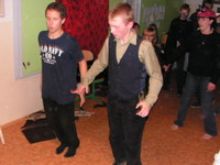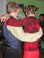 Když už jsme měli dost trapně stejných pohybů, dali jsme se do tančení v kroužcích... Pohyb á dvatři dopředu á dvatři dozadu zvládli úplně všichni... | ||