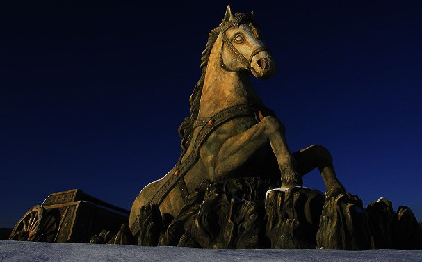 jako když hvězdu. U třetí sochy, protože to je Koň, jsem si zahráli na