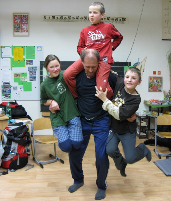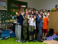 Po tomto úkolu jsme šli do lesíka a mezitím, co jsme chystali hru, si děti s Rosim zahrály bojovku.