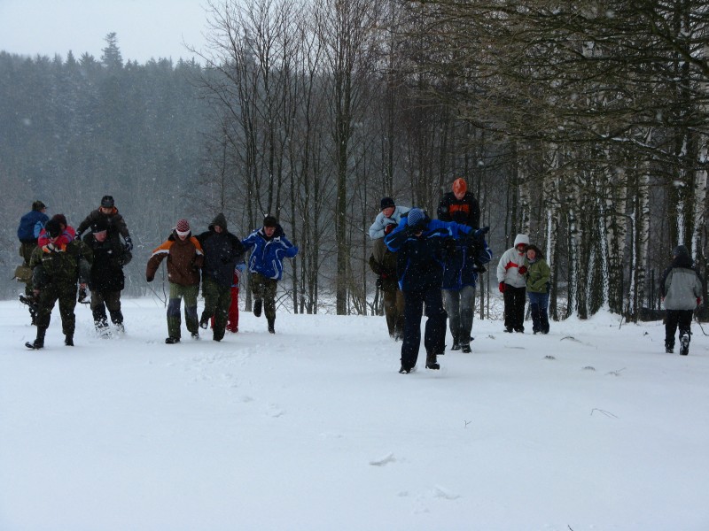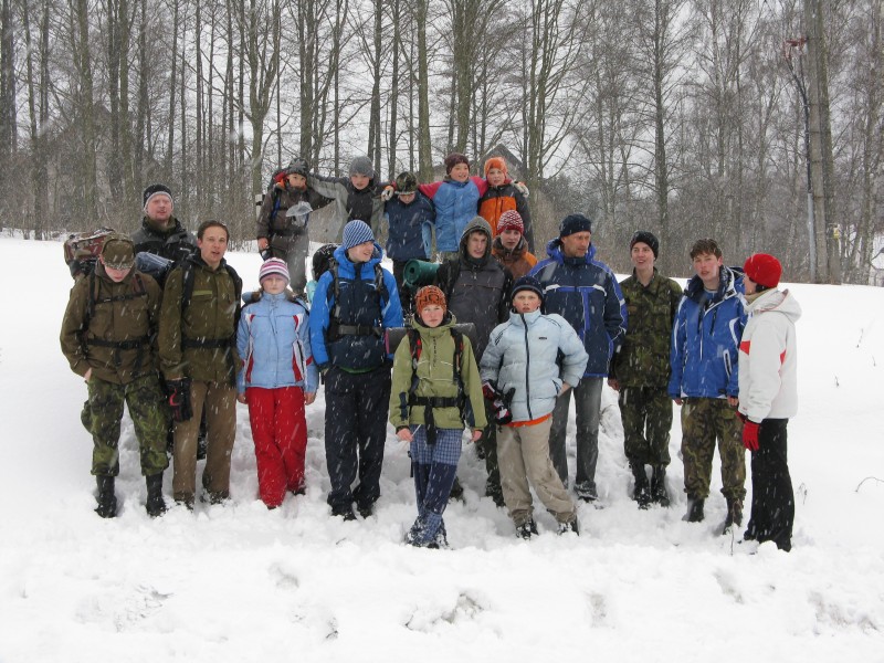 Sešli jsme se u zimáku. Nejdřív proběhla burza společných věcí a potom jsme se společně přesunuli k poště u Zelenky, kde skupinky