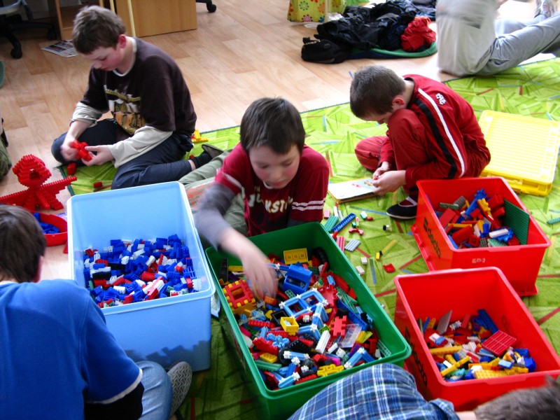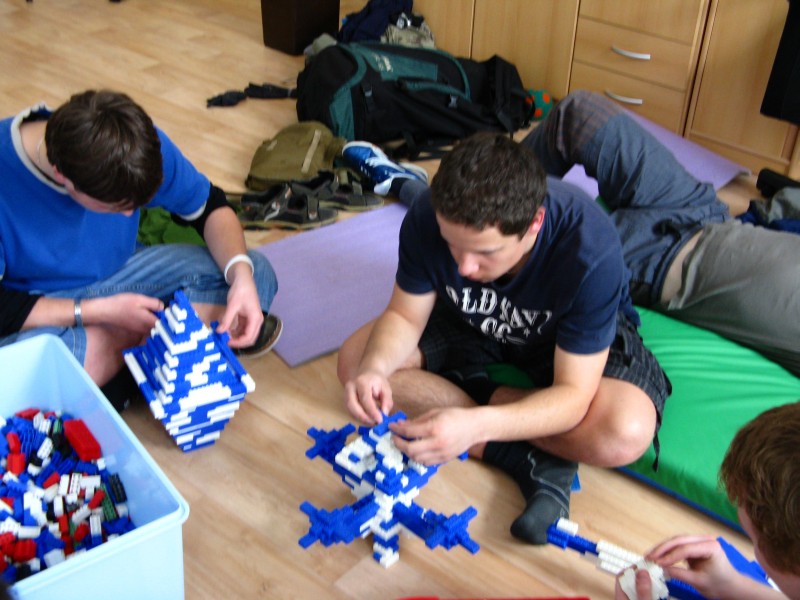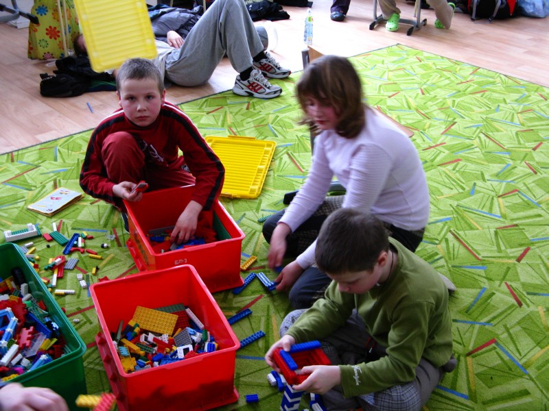 A posledním nelehkým úkolem bylo složit takovou pyramidu z lega. Jenže jeden byl němý a ten viděl originál. Musel to pomocí rukou a nohou