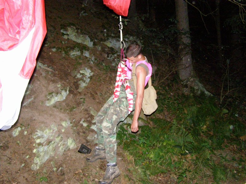 záchranáře jak tam visí na padáku a nadává…sundáváme ho a bereme ho