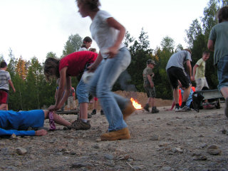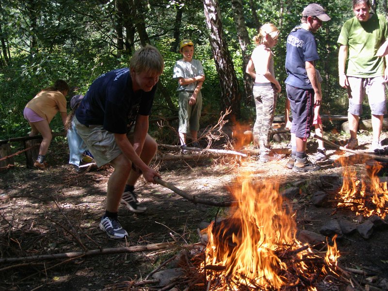 oheň…rozhodnou se, že zůstanou přes noc, domluví se na hlídkách,