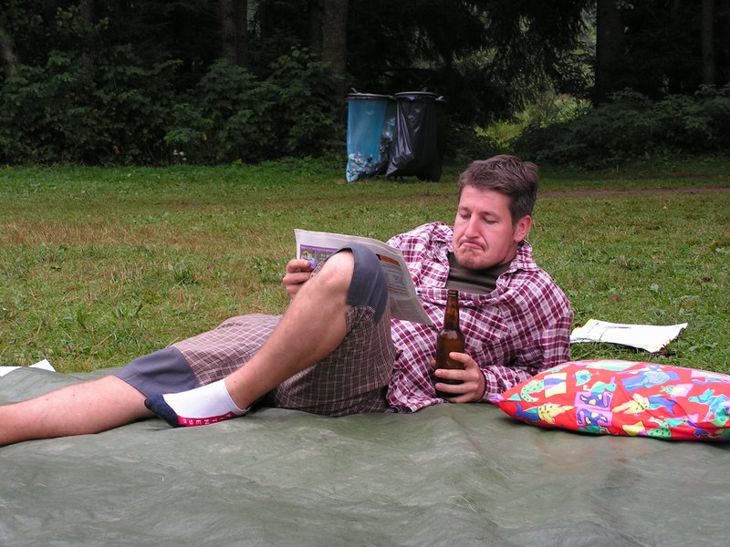 Žijeme se záchranářem v táboře a přemýšlíme co udělat.