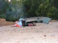 Večer si opékáme ulovené maso, když v tom slyšíme zvuk letadla,